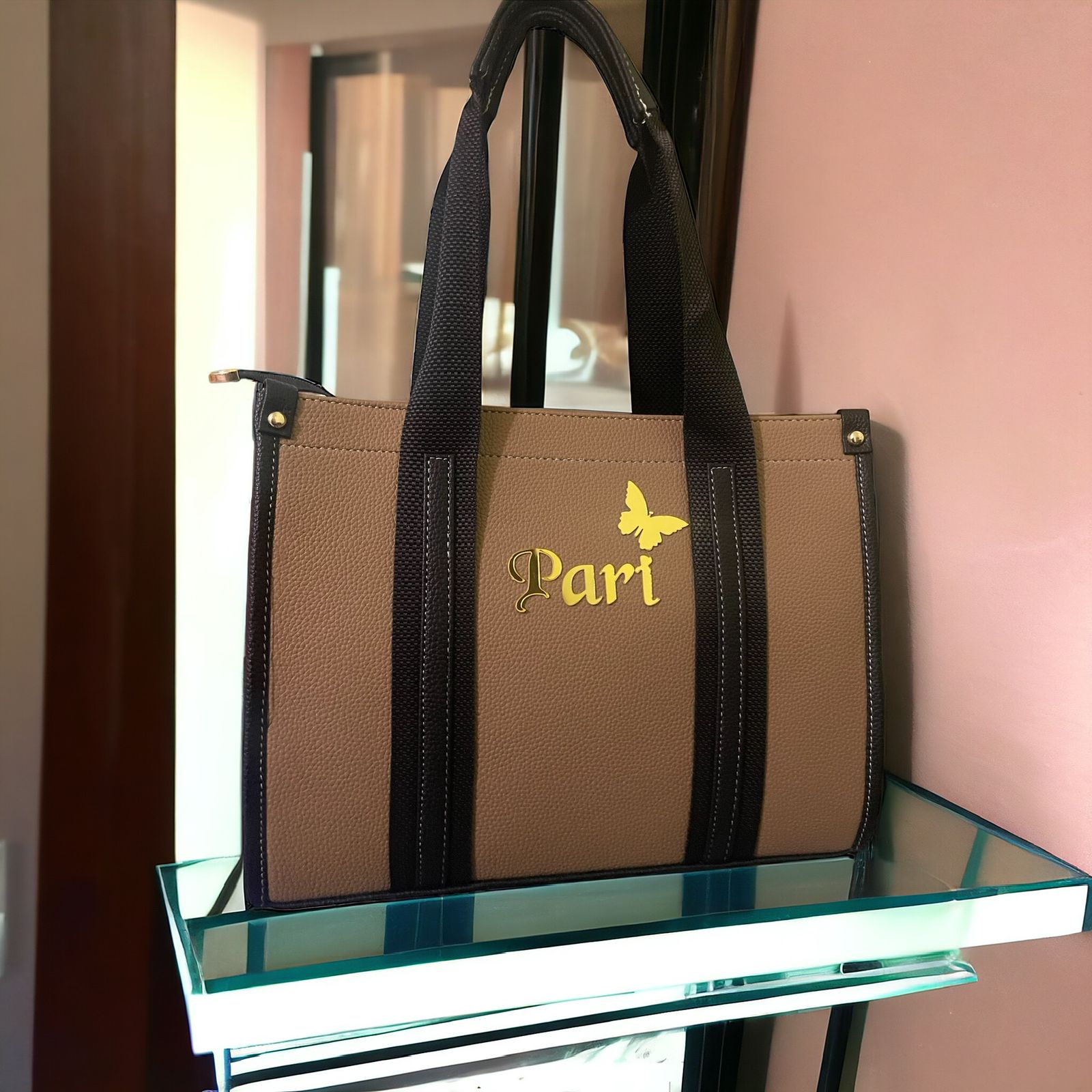 Mini Tote Bag (Brown-Black) – Compact, lightweight, and effortlessly chic. Available in White, Black, and Brown. Perfect for work, coffee dates, and everyday style.